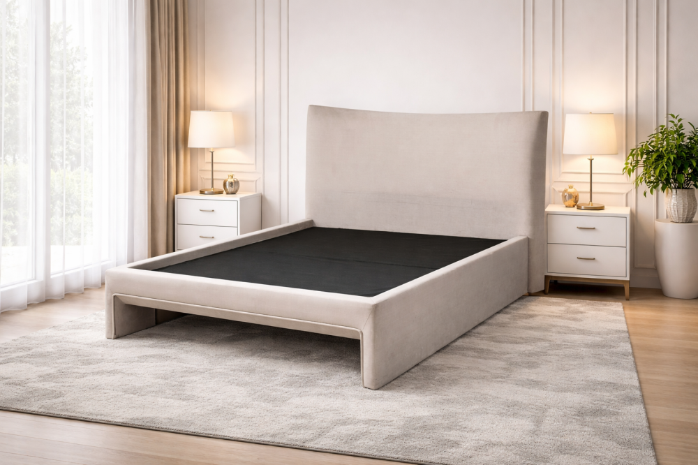 سرير مفتوح من بيت المراتب العالمية ،أضف لمسة عصرية واضحة إلى غرفة نومك مع سرير ستايل بقاعدة مفتوحة من الأسفل، المصمم ليمنح المساحة اتساعًا بصريًا وإحساسًا بالخفة، يعتمد السرير على خامات مختارة بعناية وتصنيع محلي دقيق، مع مرونة كاملة في اختيار القماش والتفاصيل، ليقدّم قطعة تجمع بين البساطة العملية والمظهر الأنيق.