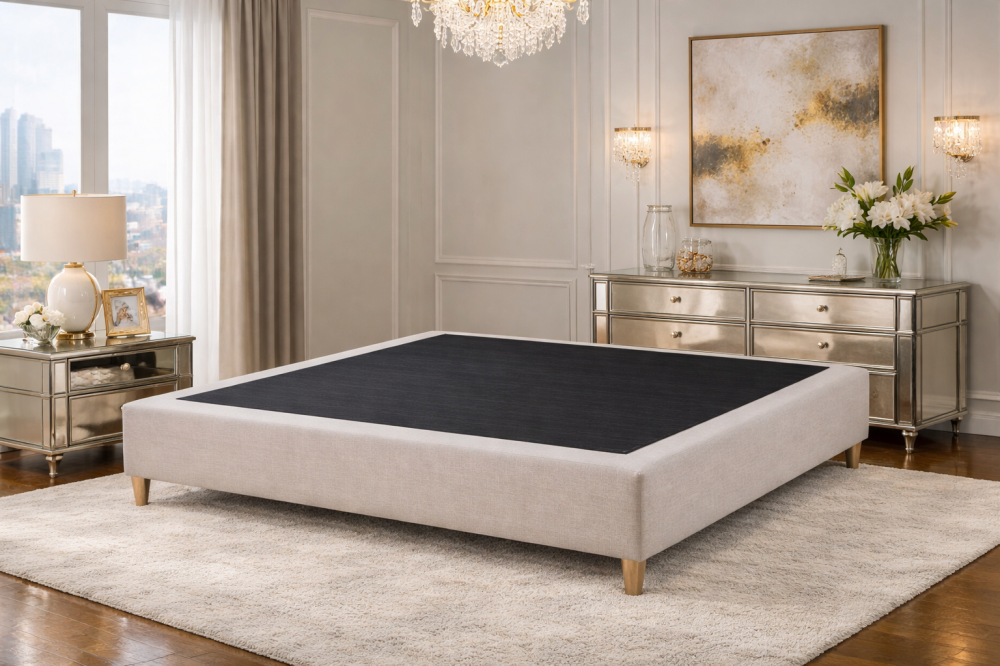 قاعدة سرير من بيت المراتب العالمية , امنح سريرك أساسًا ثابتًا بتصميم يجمع بين الصلابة والأناقة ليعزز الراحة أثناء النوم ويرفع من أداء المرتبة، تعتمد القاعدة على خشب MDF سويدي عالي الجودة معروف بمتانته، مع هيكل مدروس يوفر توازنًا ممتازًا وثباتًا مستمرًا حتى مع الاستخدام اليومي المكثف، تم تنفيذ كل جزء بعناية ودقة ليضمن تجربة نوم أكثر استقرارًا وفخامة في كل ليلة.